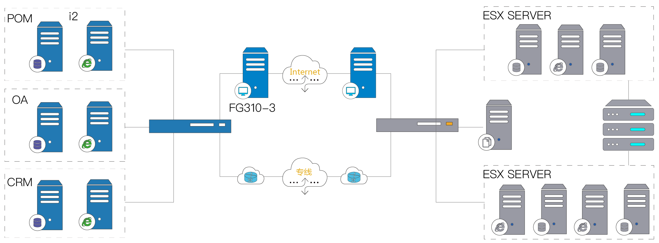 主要针对OA、CRM、POM在各自主备两台机器之间实现数据实时保护、应用的实时切换保护。具体说明如下: