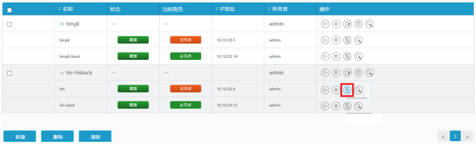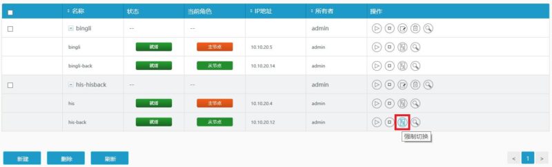 HIS双机环境关闭后,英方控制台可以监控到HIS系统已经关闭,并立马启动英方灾备虚拟机接管HIS业务,对HIS备机点击手动切换接管(用户HIS系统做了双机),如图。