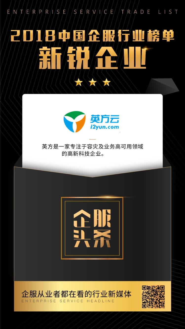 英方凭借旗下英方云在云灾备业务上的良好表现,成为容灾及业务高可用领域唯一入选“新锐企业”榜单的灾备服务商。
