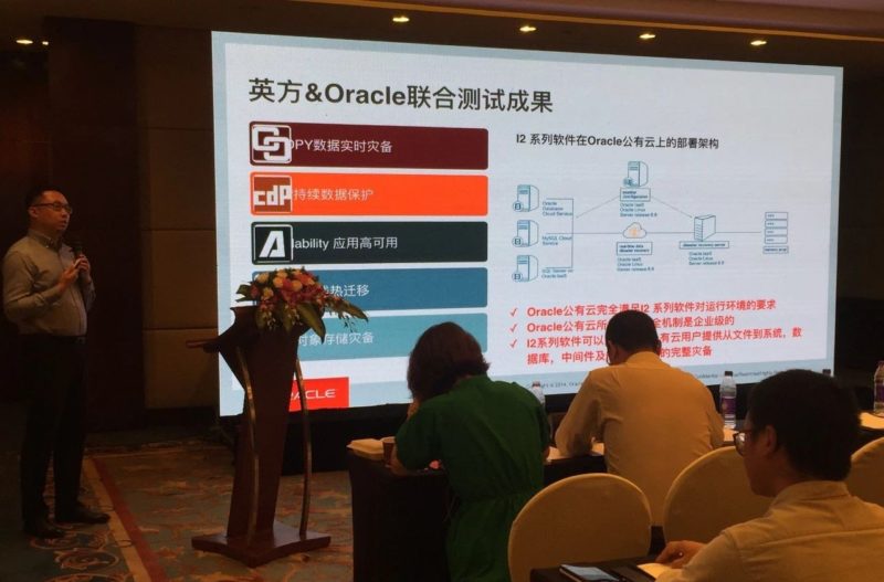 Oracle资深顾问夏卫国在分享中表示, 根据Oracle发布的云预测报告显示,到2020 年,保障安全性将上升为第一要务,对用户数据和业务安全的保护是Oracle与英方合作的基础。经过双方共同努力,英方&Oracle联合测试成果已经得到了验证,英方也是首家同时通过Powered by Oracle Cloud和BSP认证的Oracle合作伙伴,从本地部署、云端部署到跨云部署,实现了全方位应用级高可用。