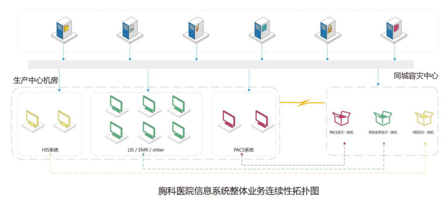 其次,英方助力胸科医院提高了针对HIS、LIS、PACS、EMR、干保等核心业务在内的业务连续性接管及数据级容灾能力,确保业务系统的安全和稳定性。
