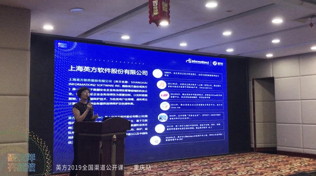 会议一开始,英方销售总监龙志英便与在座的合作伙伴们分享了今年的灾备市场和的变化。在分享中,龙志英首先介绍了一下英方。通过分享英方一路的成长轨迹,龙志英指出,无论是从发展速度,还是获得的荣誉资质,英方目前都是灾备行业首屈一指的科技公司。经过多年的发展,英方的客户遍布金融、党政军、医疗、企业、能源、教育等多个行业。