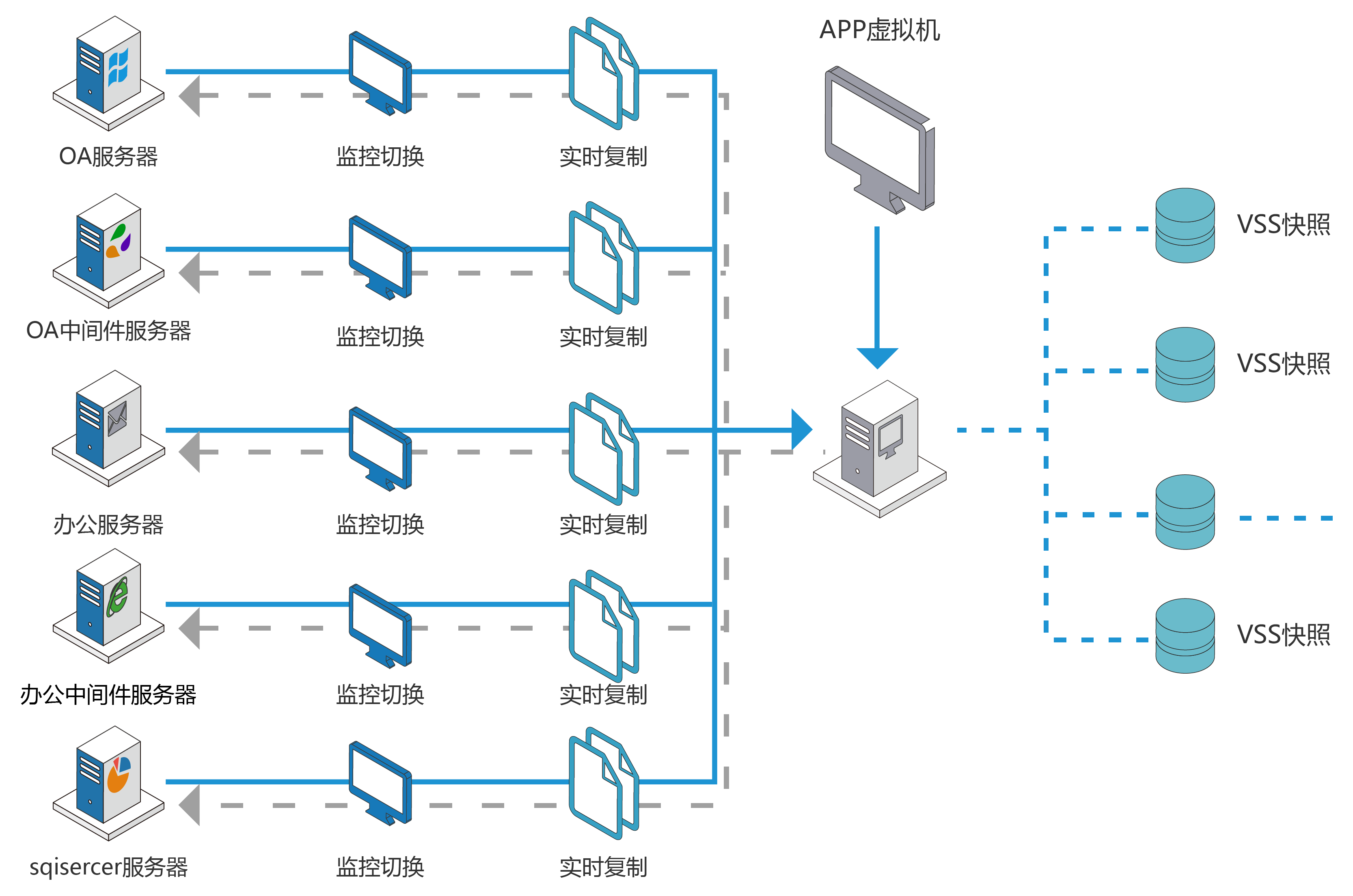 通过与Windows操作系统VSS(快照)无缝结合,实现多时间点备份,可恢复到故障点或指定时时间点。 |
