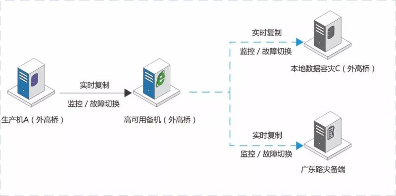 应用的快速接管——有生产端宕机警报,并在机房维护人员确认生产端宕机后,可以在分钟以内将数据库切换到备机数据库,并提供对外服务;
