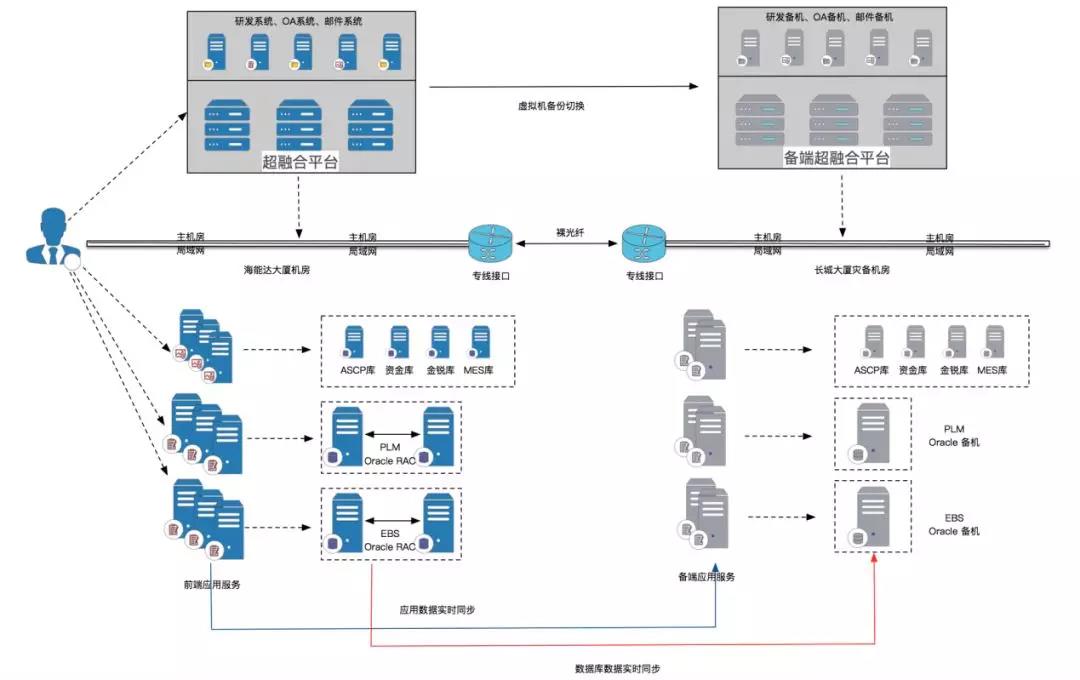 同时,为了更好地应对突发事件,提高整体IT系统对灾难的应对能力,海能达集团本期项目计划在深圳建设同城应用级灾备中心,把深圳的数据、应用容灾到同城的IDC机房,实现“同城灾备”。