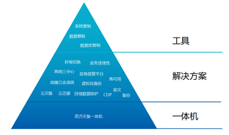 齐全的灾备产品,是为了不断出新以满足用户的应用场景。在具体的应用中,英方目前通过“灾备一体机、解决方案、工具”三位一体的产品应用,满足各类规模、各个行业的用户需求。