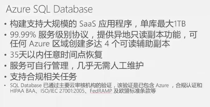 探讨:SQL Database数据库目前在云平台的高可用实际上做得是最好的,因为底层做得是最好的(与SQL Server是一个内核的),可以在任意时间恢复。这些就是把DBA解放出来,完全的自动管理,这是云带来的变化,降低了门槛,大家在管理数据库时更加容易。