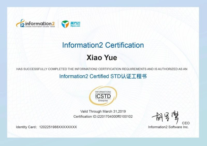 i2 Certification STD 工程师证书(模板)