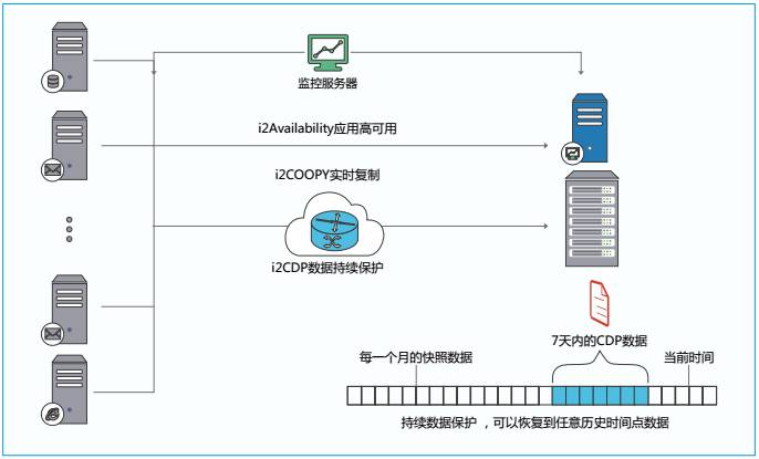 英方高级备份i2CDP(Information2Continuous Data Protect 即英方持续数据保护)为关键数据提供持续的、不间断的保护,并可根据需求将数据快速恢复到之前的任意时间点。i2CDP在将变化的数据实时复制到灾备中心的同时,也将数据的任何变化以日志方式记录下来,实现对数据变化的可回溯性;也可在任何情况下依据数据变化日志,快速定位需要恢复的时间点,并将数据一键式恢复到异常点之前。