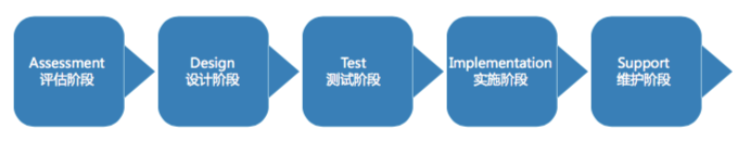在政府和企业的灾备建设过程中,灾备厂家已经不再仅仅是提供灾备产品和安装的单一角色,而是逐步参与到灾备建设评估、设计、测试、实施、维护演练的灾备建设全生命周期中,担当起保障国家数据安全的责任和义务。以英方灾备服务(i2-Service)的5个阶段来展开: