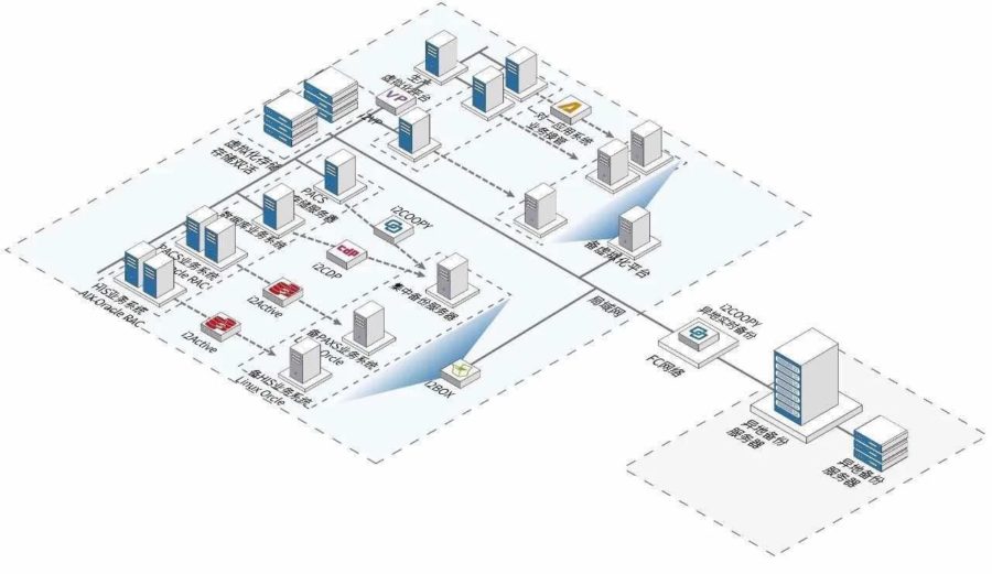 1)医院核心的HIS和PACS系统运行在AIX的Oracle RAC环境,通过英方i2Active做实时灾备。