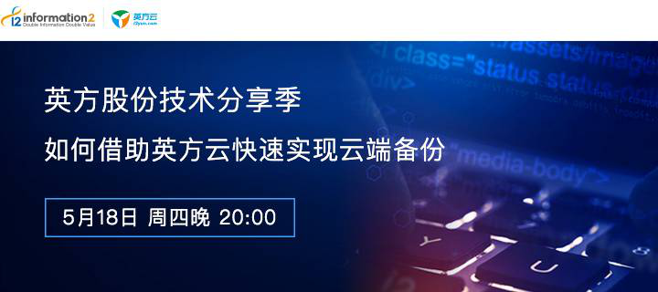 5月18日,本周四晚20:00,英方股份产品经理张高翾将进行《如何借助英方云快速实现云端备份》的分享,这也揭开了自去年英方股份技术分享季首季开启后的第二季分享,第二季我们将更多就操作和实践进行分享,除了第一期的云灾备,之后还会有包括迁业务移、应用高可用、数据库双活等多方面的分享,欢迎大家持续关注。
