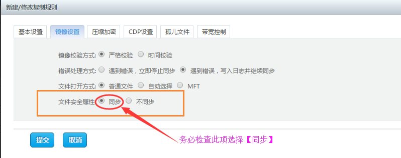 如果您的系统是Linux,为避免权限同步不正确,导致即时恢复或者CDP恢复的文件没有权限,请在首次配置云备份规则时,勾选【同步文件安全属性】。