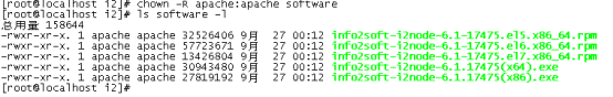 2、如果还未防止安装包,请在/var/www/html/i2/ 目录下创建一个目录,如创建software目录,并将安装包都上传到该目录下,之后执行赋权命令。相关命令及截图如下: