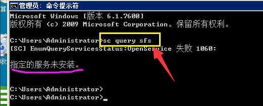 使用 sc query sfs 检查sfs模块加载是否正常。