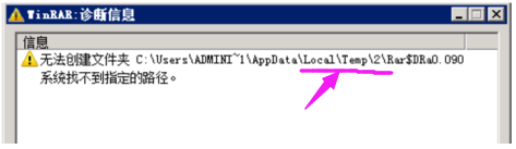 解压过程弹出报错,找不到路径,如下可知Temp下有一个名字为2的目录。