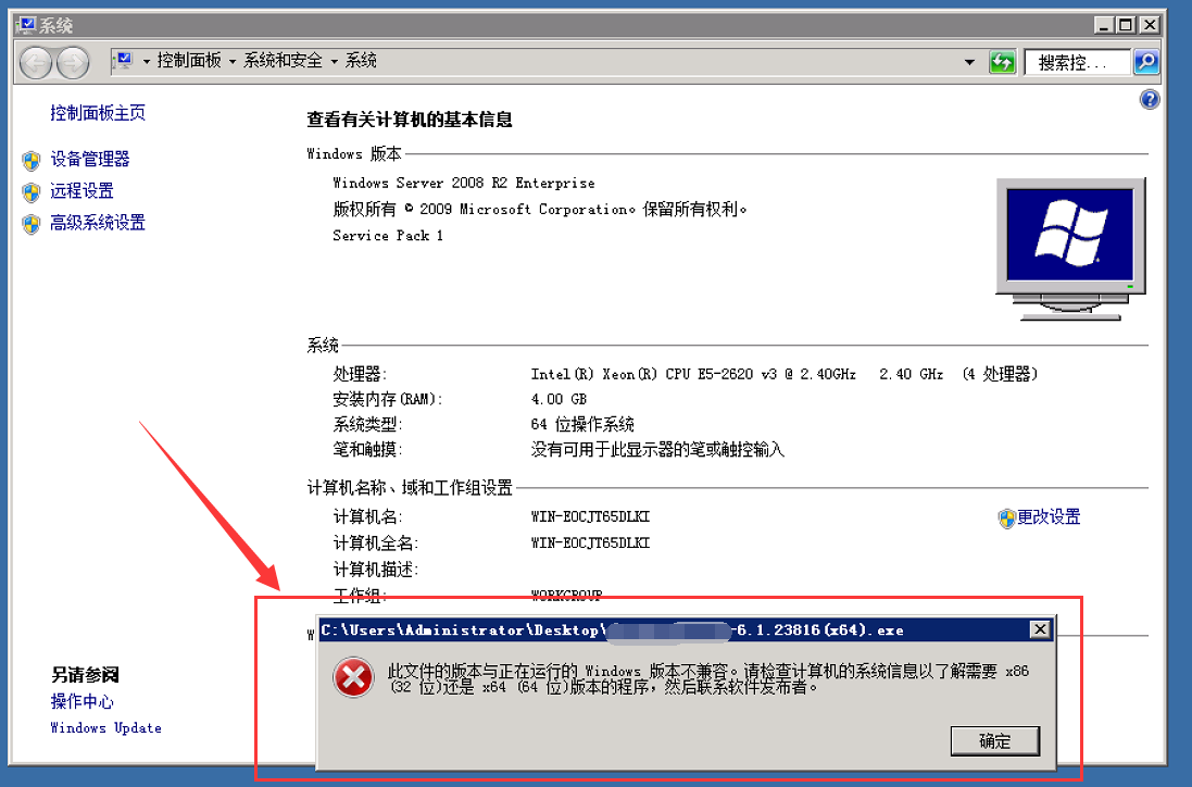 如下所示,Windows操作系统在安装i2node时报错“此文件的版本与正在运行的Windows版本不兼容。请检查计算机的系统信息以了解需要 x86(32位)还是x64(64位)版本的程序,然后联系软件发布者。”