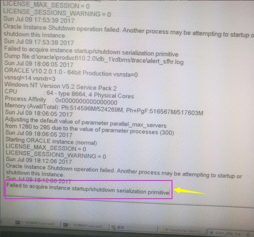 本例中,修改了系统参数后,重启再启动Oracle数据库服务正常。
